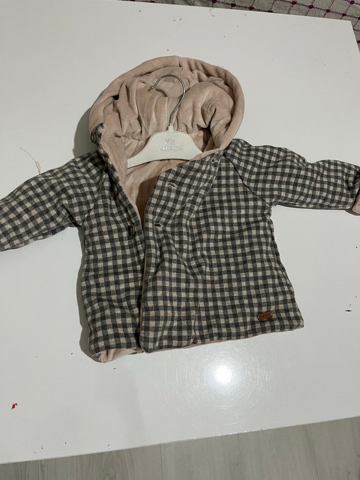 Erkek çocuk için gri ekose desenli, düğmeli, yumuşak ve sıcak kumaştan üretilmiş, rahat kesim ceket. Notch yaka detayına sahiptir.