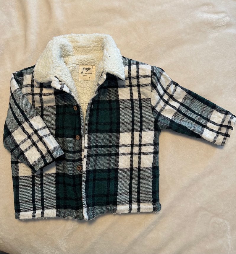 Erkek Çocuk Gri Ekose Düğmeli Mont 2-3 yaş