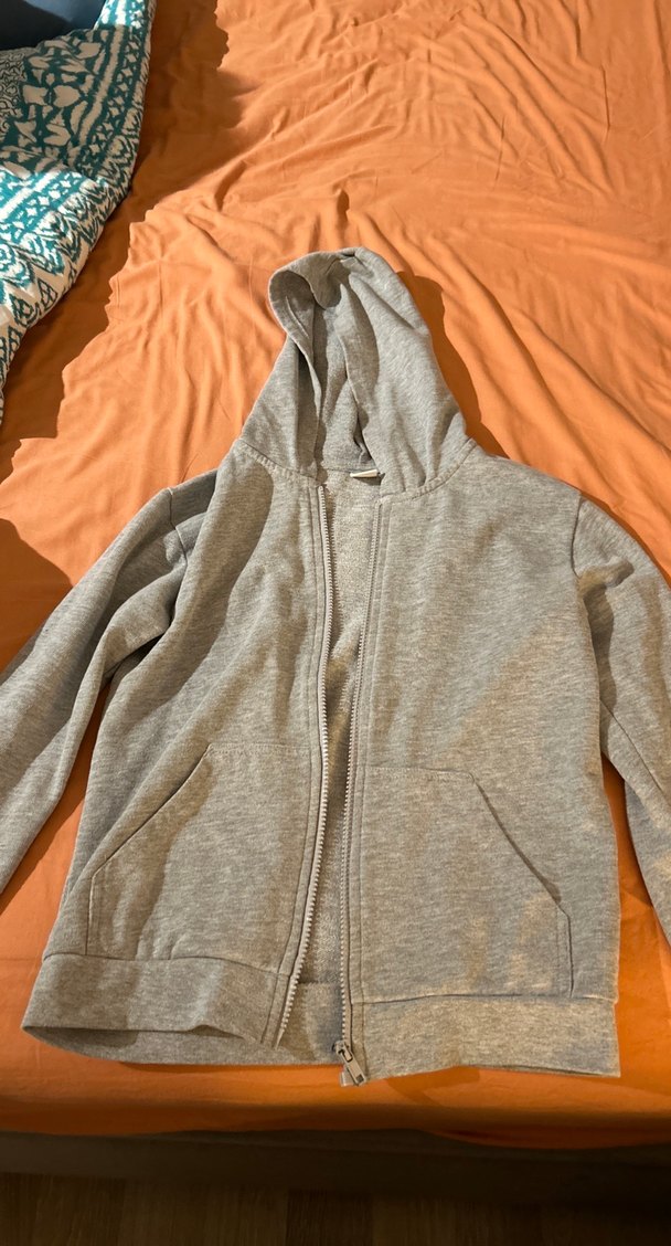 Erkek çocuklar için gri, fermuarlı, kapüşonlu sweatshirt. Uzun kollu, yumuşak ve sıcak kumaştan, sade desensiz, cep detaylı.