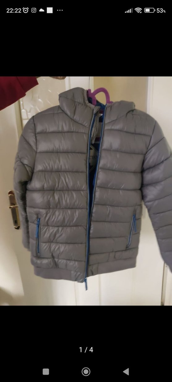 Fermuarlı ve cep detaylı, gri renkte, yumuşak kumaştan erkek çocuk montu. Notlu yakası ve dar kesimiyle trend sokak stili için uygun.