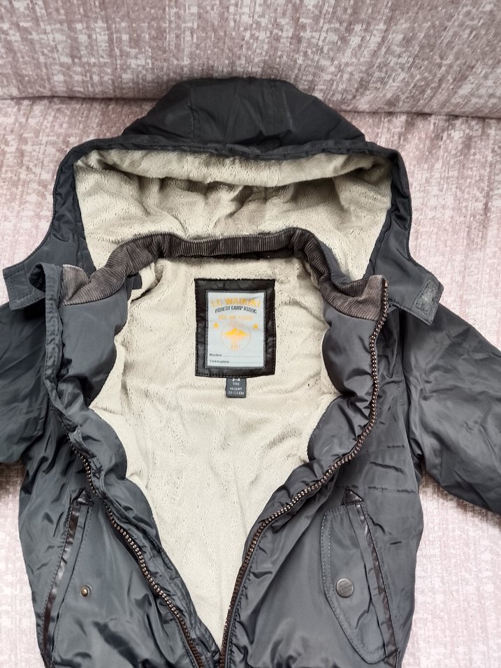 Gri renkte, fermuarlı ve kapüşonlu, yumuşak kumaştan yapılmış, sokak tarzı ve sade desenli, erkek çocuk için dar kesim mont. LC Waikiki ürünüdür 2 defa kullanılmıştır