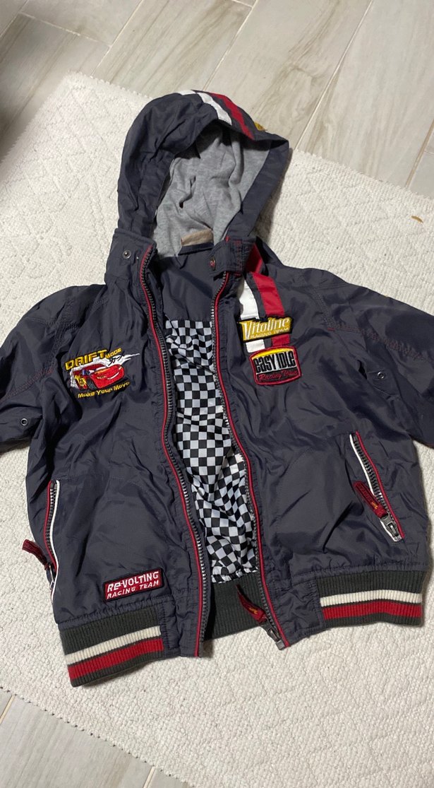 Fermuarlı önü, baskılı detayları ve kesik yaka tasarımıyla gri erkek çocuk ceketi. Yumuşak iç yüzey ve sportif patchler içerir.