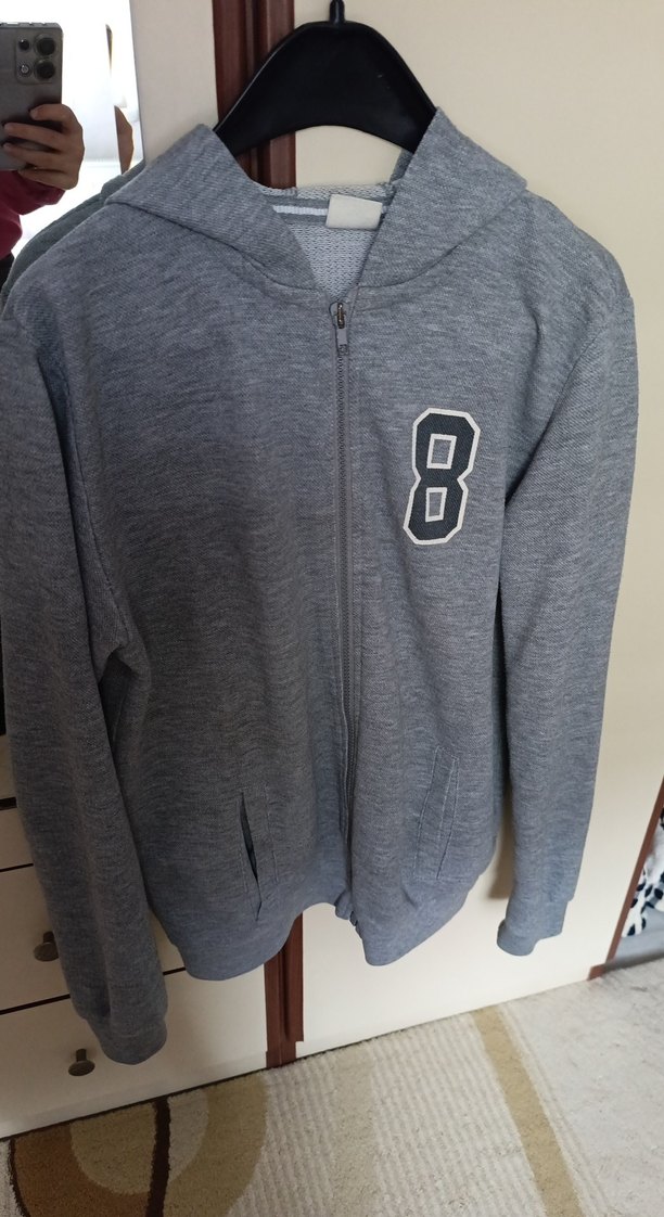 Erkek çocuk için uzun kollu, bisiklet yaka ve fermuarlı ön kısmı olan fitted kesim sweatshirt. Yumuşak ve sıcak kumaştan, sade gri renkte ve 8 numara detaylıdır.