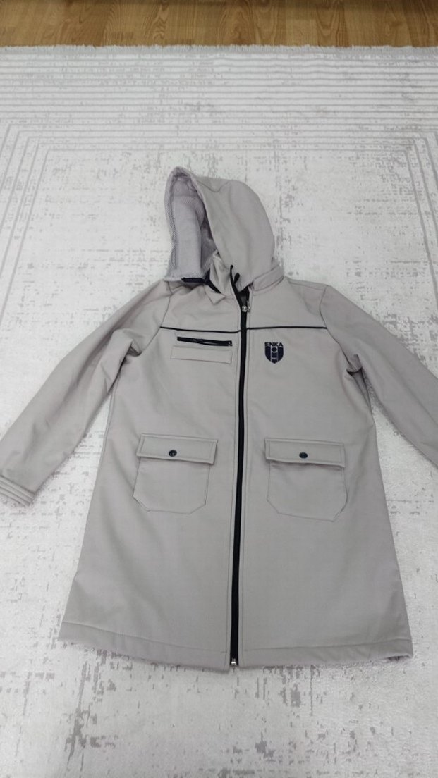 Erkek çocuk için fermuarlı, kapüşonlu ve cepli gri yağmurluk. Yumuşak ve sıcak kumaştan, regular fit kesimle tasarlanmıştır. ️