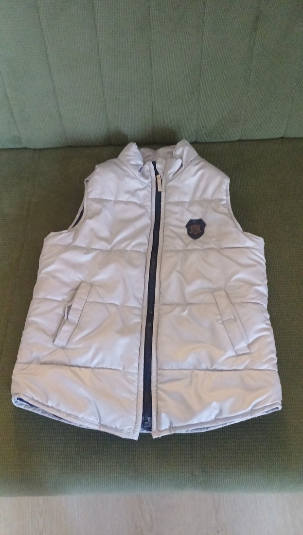 Gri renkli, fermuarlı ve yakalı erkek çocuk yeleği. Rahat ve sokak tarzına uygun dar kesim. İçi pamuklu değil.