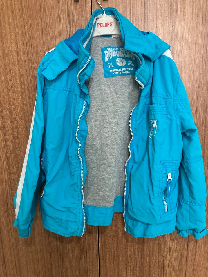 Gri iç astarlı, mavi dış yüzeyli, fermuarlı cepli ve notched lapel yakalı, rahat kesim erkek çocuk ceketi. PELOPS markalıdır.