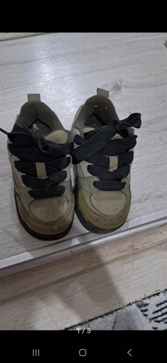 Erkek çocuk spor ayakkabısı, gri ve kahverengi renkte, kaymaz kauçuk tabanlı ve cırt cırtlıdır. Sokak modasına uygun rahat bir modeldir.