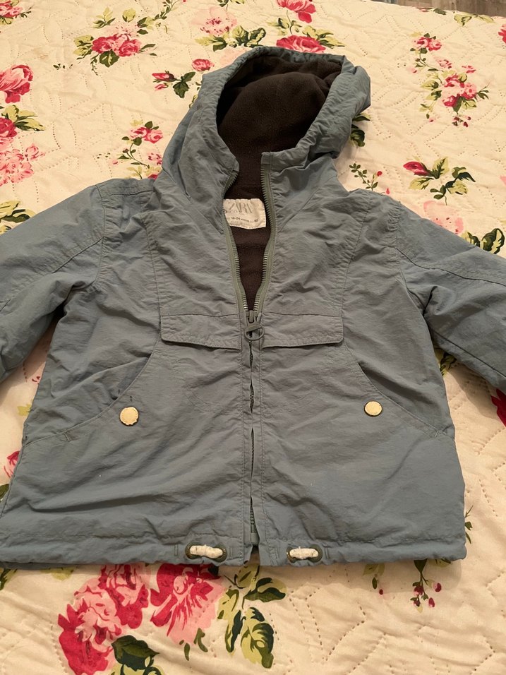 Erkek çocuk için gri renkli, kapüşonlu ve düğmeli ceplere sahip, yumuşak kumaştan üretilmiş bol kesim sokak tarzı mont. Deseni düz ve desensizdir.