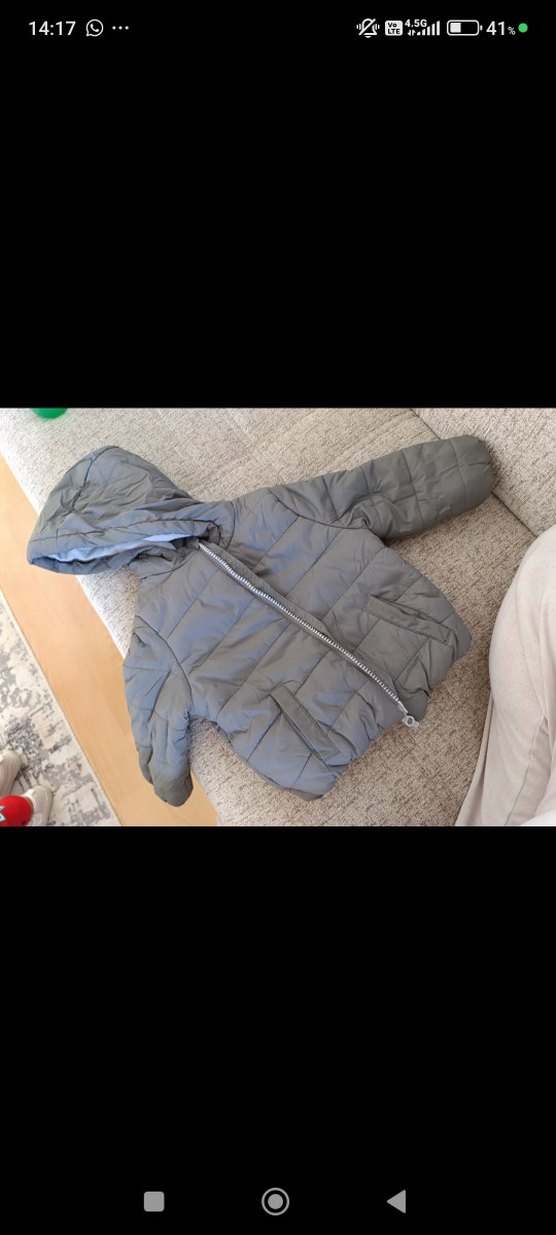 Erkek çocuklar için kapüşonlu ve fermuarlı, yumuşak ve sıcak kumaştan yapılmış, düz ve gri renkte sokak stili mont. LC WAİKİKİ 9-12 aylık hiç giyilmedi