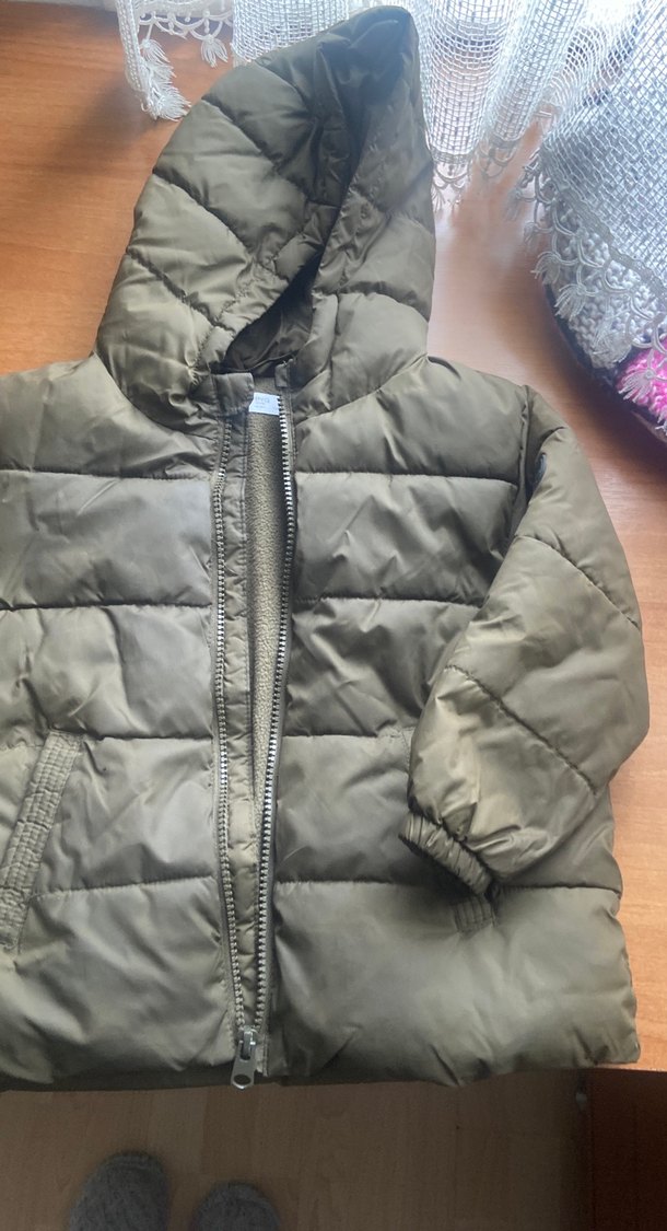Fermuarlı önü ve yakası kesimli, gri renkte yumuşak kumaştan erkek çocuk montu. Düz ve sade tasarıma sahiptir.