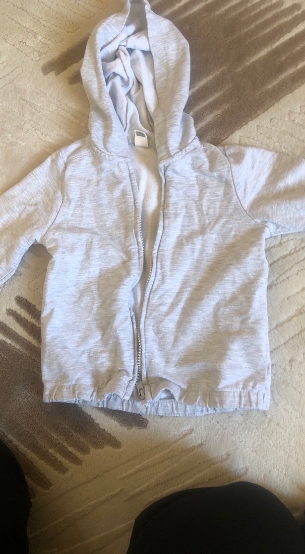 Erkek çocuk için gri renkli, fermuarlı ve kapüşonlu sweatshirt. Uzun kollu, ince kesim ve rahat keten dokusundan yapılmıştır.