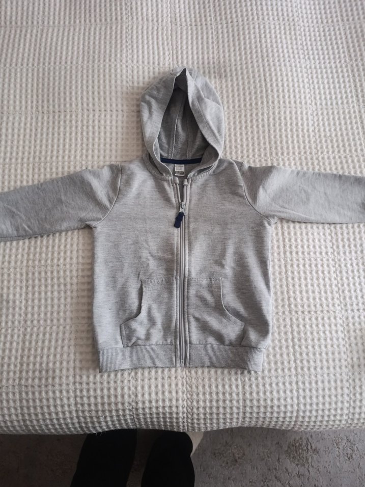 Erkek çocuk için kapüşonlu, fermuarlı ve uzun kollu gri sweatshirt. Yumuşak kumaştan, dar kesimli ve sade tasarımlıdır.