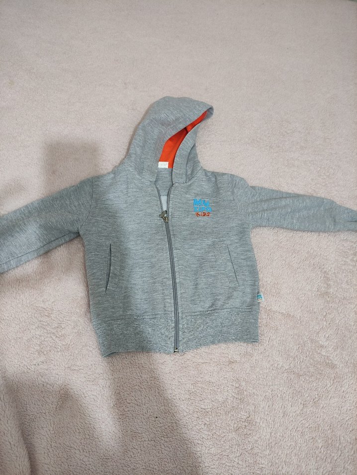 Gri renkte, baskılı ve fermuarlı kapüşonlu erkek çocuk sweatshirt. Uzun kollu, dar kesim ve yumuşak, sıcak tutan kumaştan üretilmiştir.