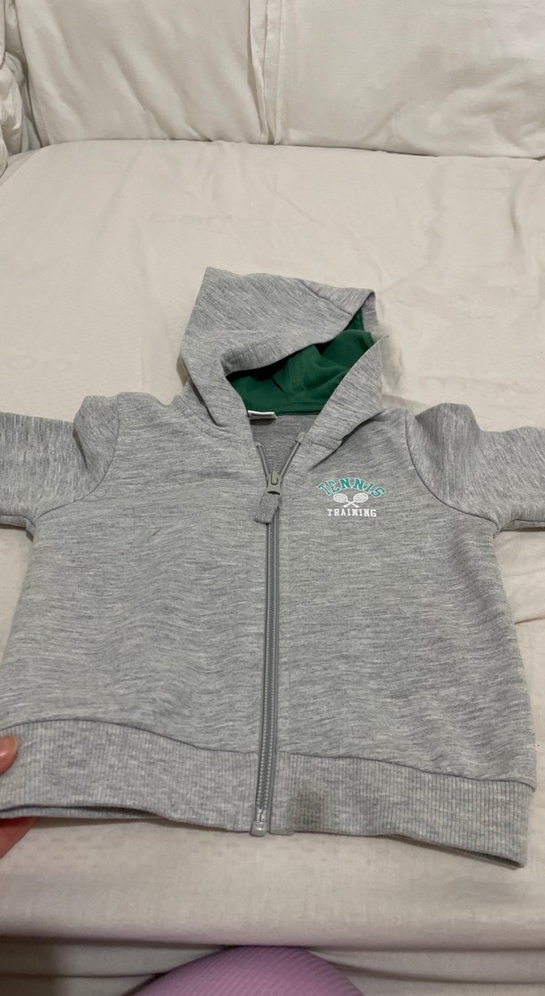Gri renkli, kapüşonlu ve fermuarlı erkek çocuk sweatshirtü. Uzun kollu, baskılı ve rahat sokak stiliyle dikkat çeker. 6-9 ay olmasına rağmen 1.5 yaşına kadar kullandım bol bir model