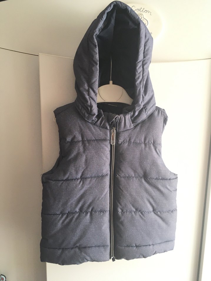 Erkek çocuklar için gri, kapüşonlu ve fermuarlı, yüksek yakalı, kolsuz, yumuşak ve sıcak kumaştan yapılmış fit kesim yelek. H&M orjinal ürün !