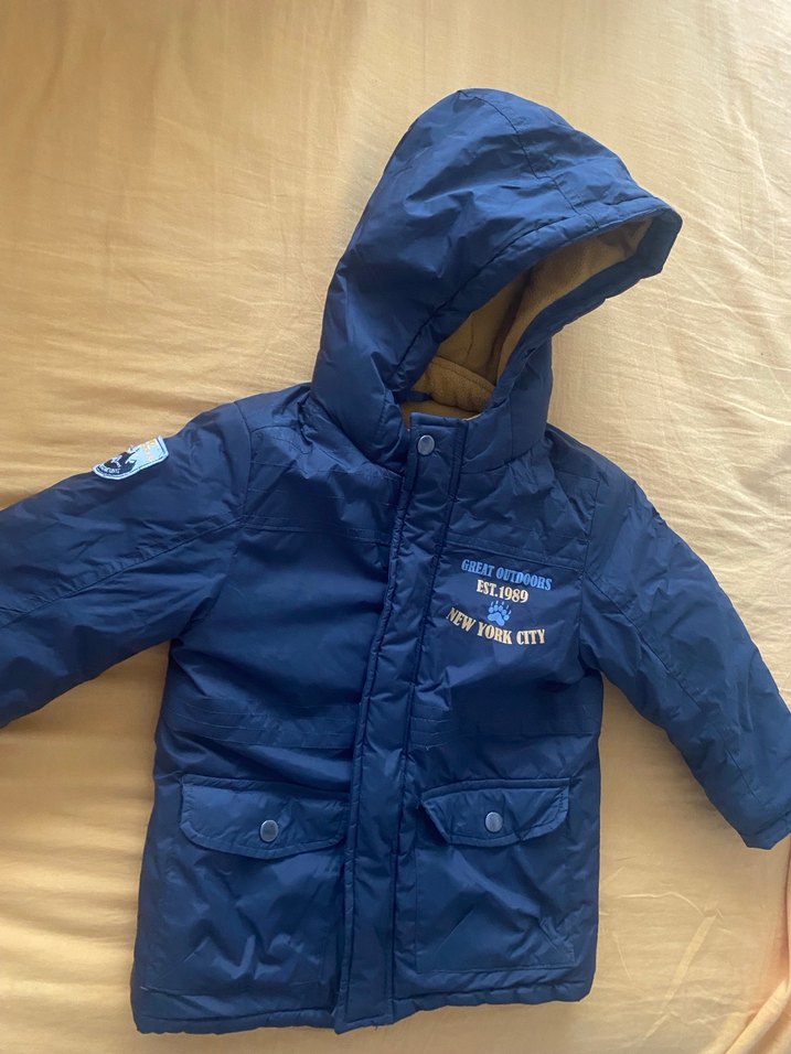 Fermuarlı ,kapüşonlu ve baskılı detaylara sahip erkek çocuk kaban . İçi polar , kalın soğuğa dayanıklı, kolları , cepleri çıtçıtlı 3-4-5 yaşa uygun.