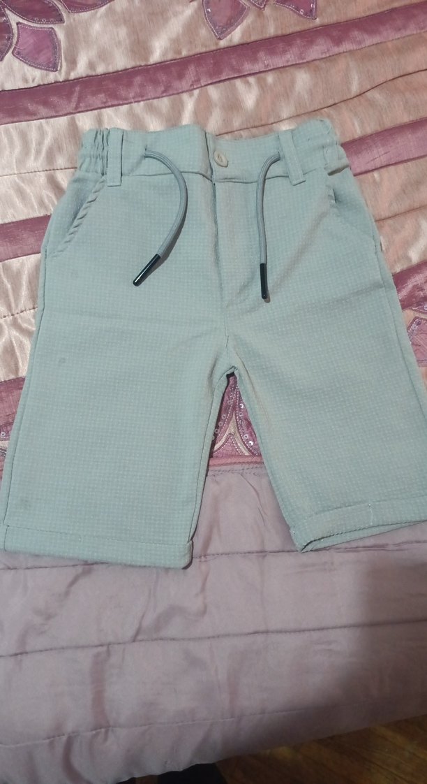 Erkek çocuklar için, yumuşak sentetik kumaştan yapılmış, bol kesim ve pastel gri renkte şort. Kemerli ve desensiz, sokak tarzına uygun. hediye gelmişti hiç giyilmedi