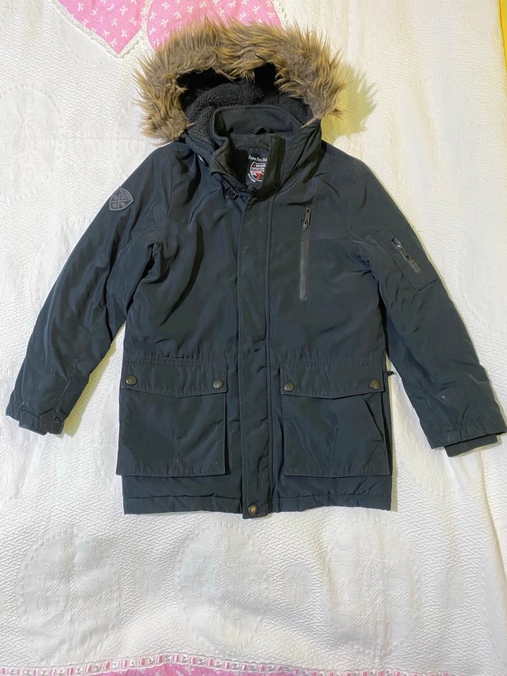 Erkek Çocuk Gri Kürklü Kapüşonlu Kaban