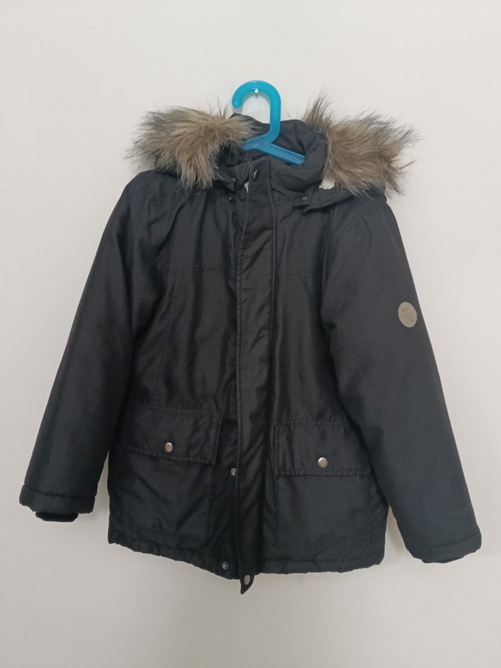 Erkek çocuklar için fitted kesim gri mont, kürklü kapüşonlu. Yumuşak ve sıcak kumaştan üretilmiştir.