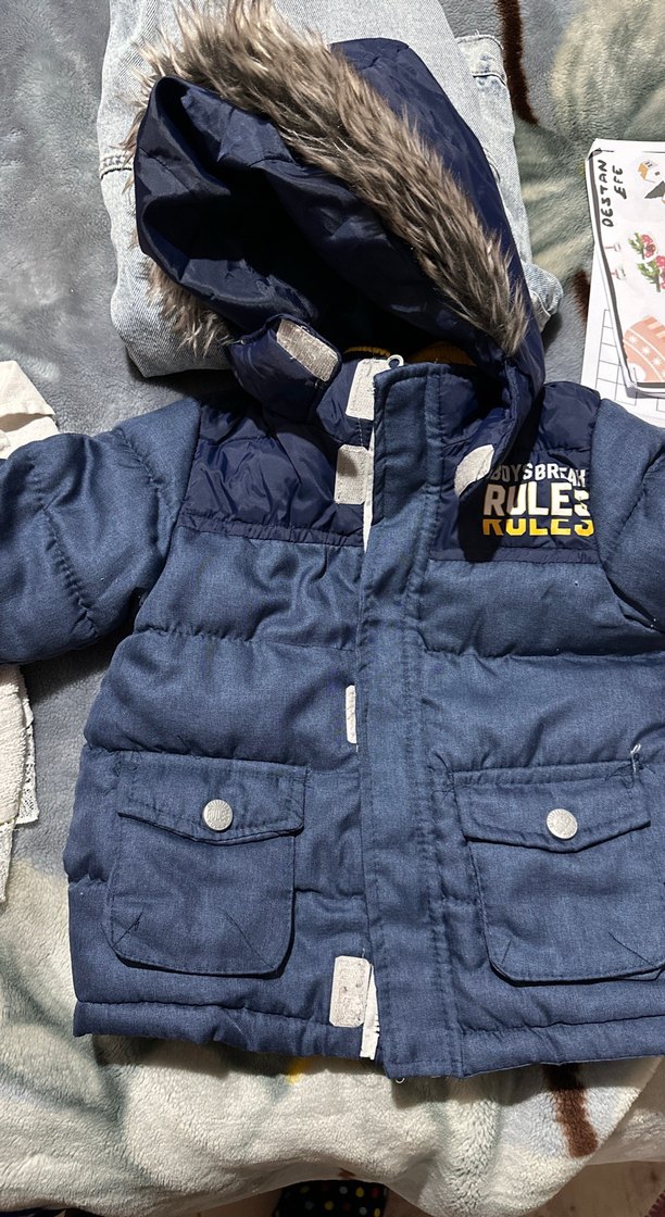 Gri renkte, kürk detaylı ve baskılı, kesimi vücuda oturan erkek çocuk montu. Notch yakalı ve sokak modasına uygun tasarım.