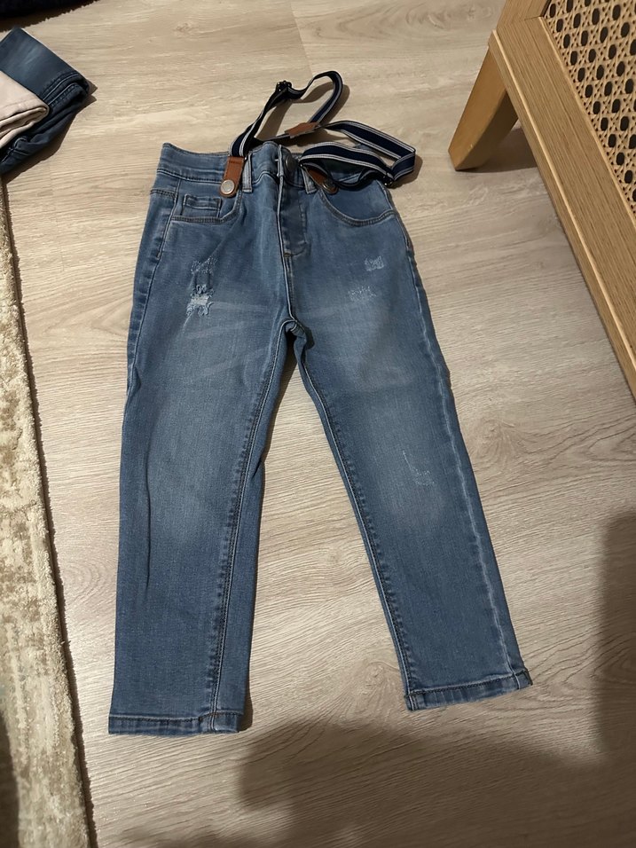 Erkek çocuklar için gri mavi tonlarında, bol kesim kot pantolon. Tokalı kemer detayına sahip, rahat ve sokak stili için uygun. Çok temiz sorunsuz