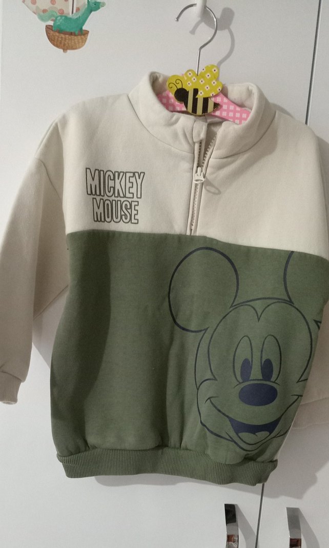 Erkek çocukları için bol kesim, uzun kollu ve bisiklet yaka sweatshirt. Mickey Mouse baskılı, fermuarlı ve yumuşak, sıcak dokulu kumaştan yapılmıştır.