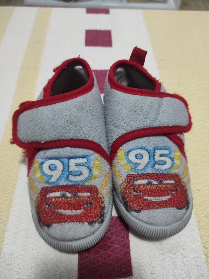 Erkek çocuklar için yumuşak ve sıcak kumaştan yapılmış, renkli nakışlı ve kolay giyilen cırt cırtlı terlikler. Gri taban, kırmızı kenar ve 95 numaralı araba figürü bulunur.