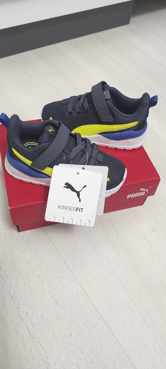 Gri renkli Puma spor ayakkabılar, baskılı desen ve kolay kullanım için cırt cırtlı bant içerir puma çocuk ayakkabı 22 no orijinal sıfır ürün
