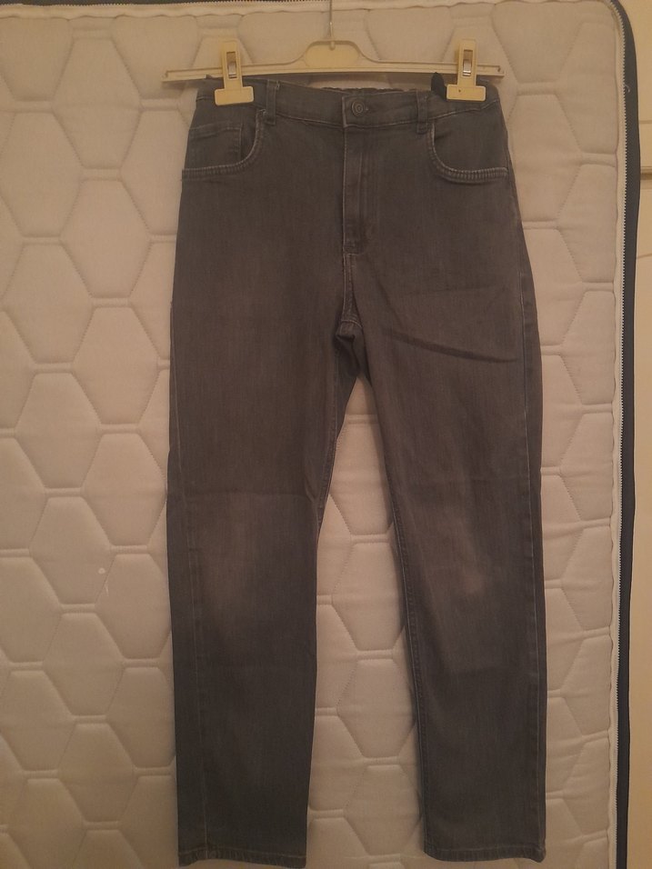 Regular fit kesim, gri renkte erkek çocuk denim pantolon. Rahat ve şık sokak stili için uygun, desen içermeyen model.