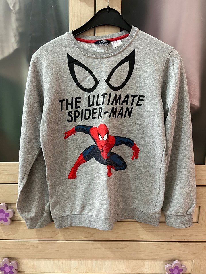 Fitted kesim, uzun kollu, bisiklet yaka ve örme sentetik kumaştan yapılmış gri erkek çocuk sweatshirtü. Spider-Man baskısı ve 'THE ULTIMATE SPIDER-MAN' yazısı bulunur. ️
