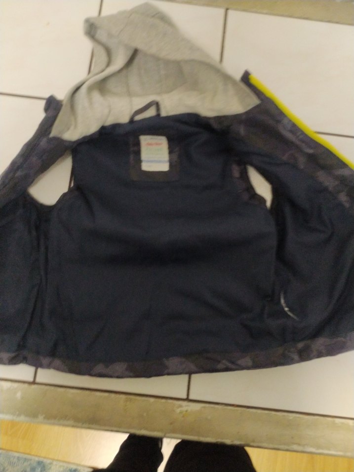 Gri renkli, baskılı, sentetik kumaştan erkek çocuk yeleği. Düz kesim, bisiklet yaka, kolsuz ve cırt cırtlı kapanışlıdır. Trendy günlük tarz için uygundur.