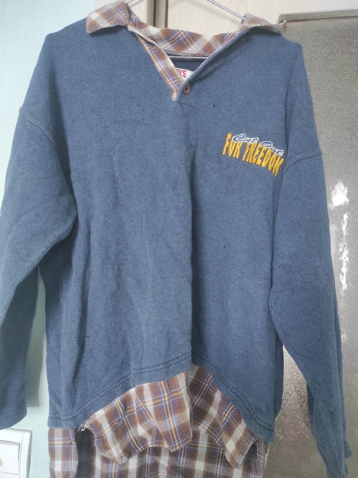 Bu erkek çocuk sweatshirtü, bol kesim uzun kollu ve gömlek yaka tasarıma sahiptir. Düğmeli ön kısmı ve yumuşak, sıcak kumaşıyla dikkat çeker. Gri-mavi renkli ve sade, rahat bir stil sunar.