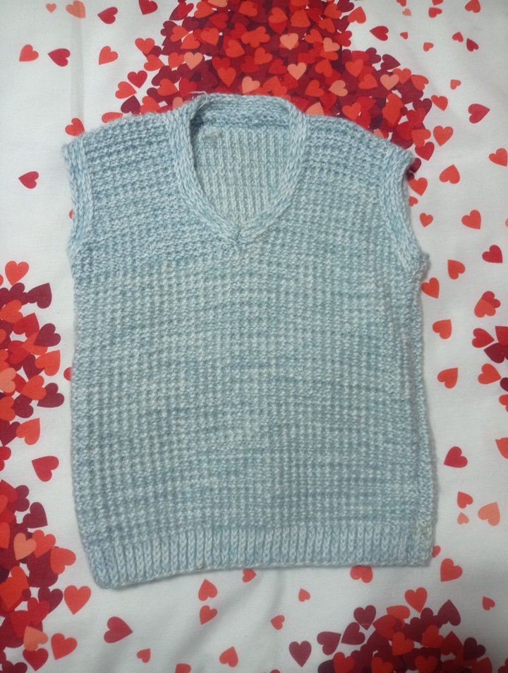 Erkek çocuk için gri renkte, V yaka, kolsuz ve örgü dokulu süveter. Rahat kesimi ve sade tasarımıyla normcore stiline uygun.