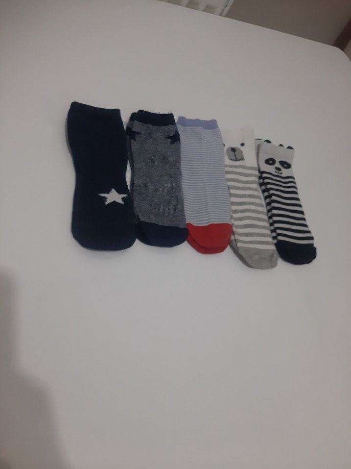 Farklı desenlerde, gri ve koyu tonlarda erkek çocuk çorap seti. Rahat ve günlük kullanım için uygundur.