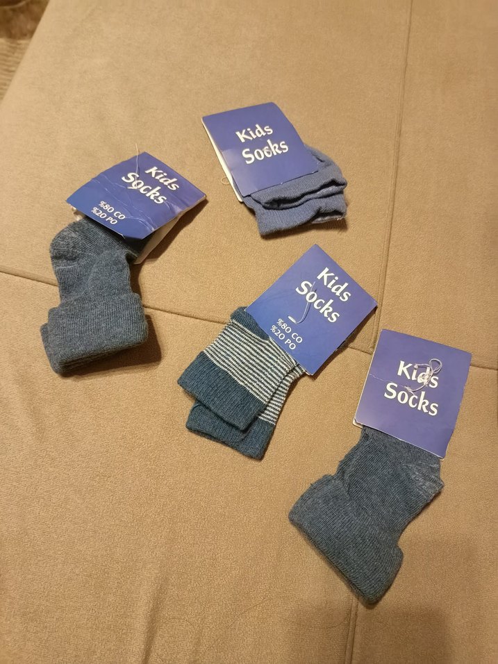 Erkek çocuklar için gri ve mavi renklerde, desenli ve yumuşak dokulu çoraplar.