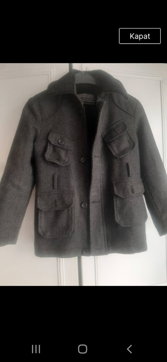 Erkek Çocuk Gri Yün Düğmeli Kaban