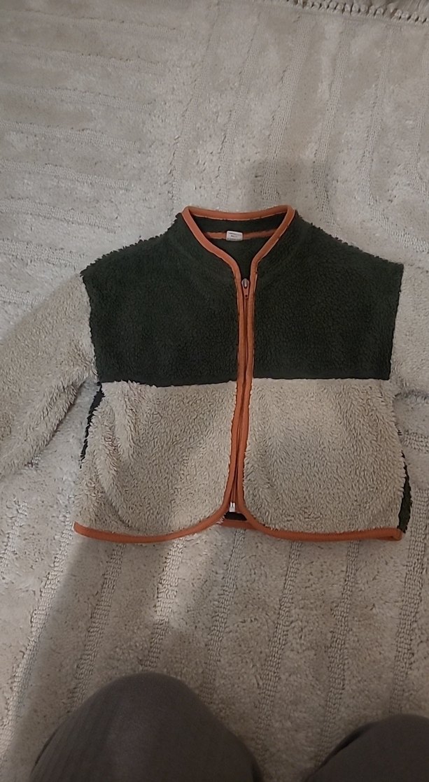 haki ve bej renklerde, fermuarlı ve bisiklet yaka, rahat kesimli erkek çocuk hırka, yumuşak ve sıcak kumaştan üretilmiştir.