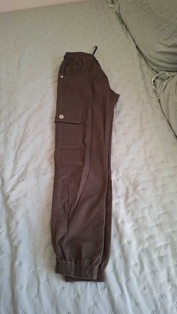 Sentetik kumaştan, haki, bol kesim erkek çocuk pantolonu. Bel detaylı, sokak tarzı ve rahat, lastikli paça ile konforlu.