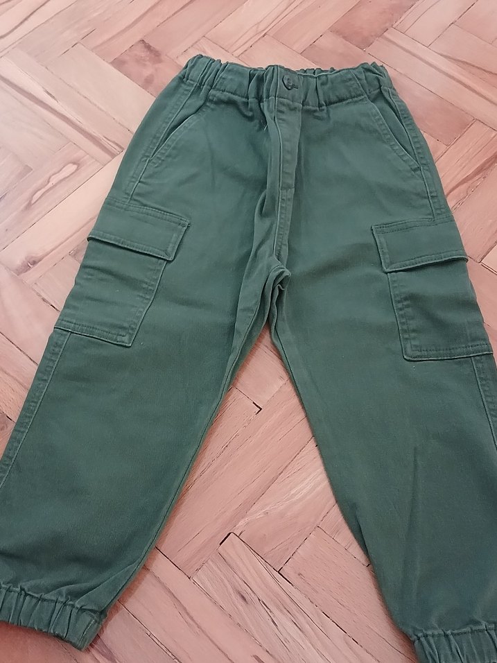 Erkek çocuklar için bol kesim, haki renkli pamuklu kargo pantolon. Elastik bel ve paça detaylarıyla rahat kullanım sağlar.