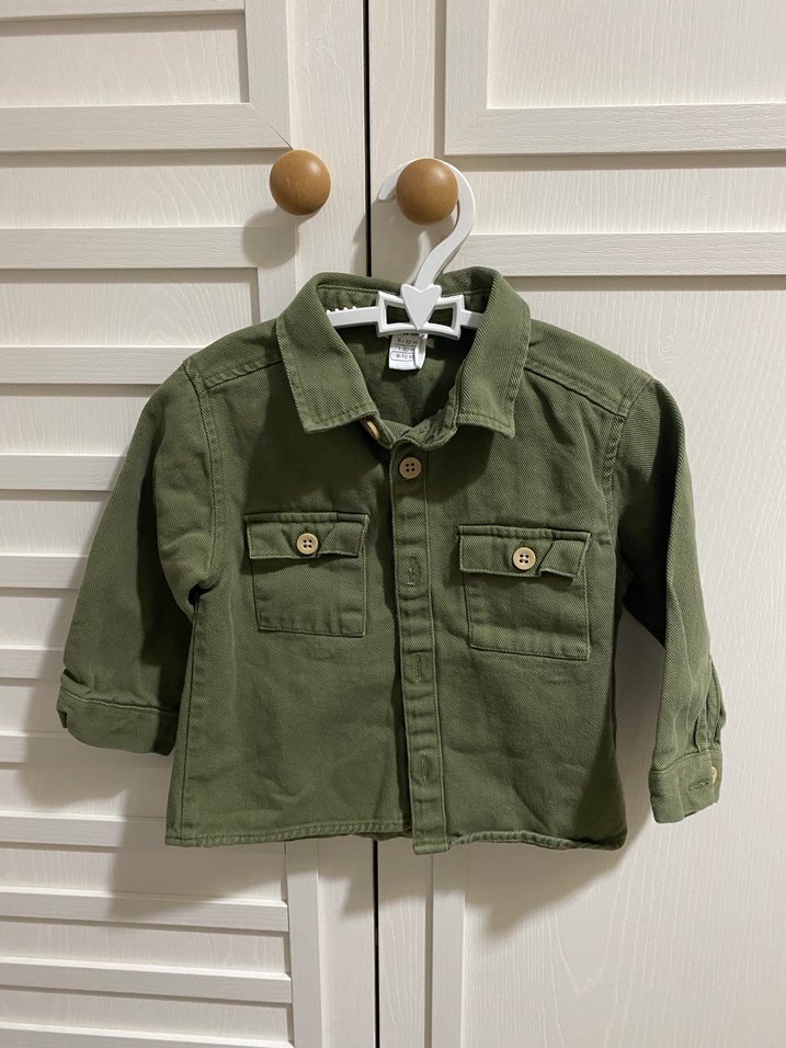 Haki renkte, düğmeli ön ve iki cepli uzun kollu pamuklu erkek çocuk gömleği. Notch yaka ve bol kesim ile rahat bir sokak stili sunar.