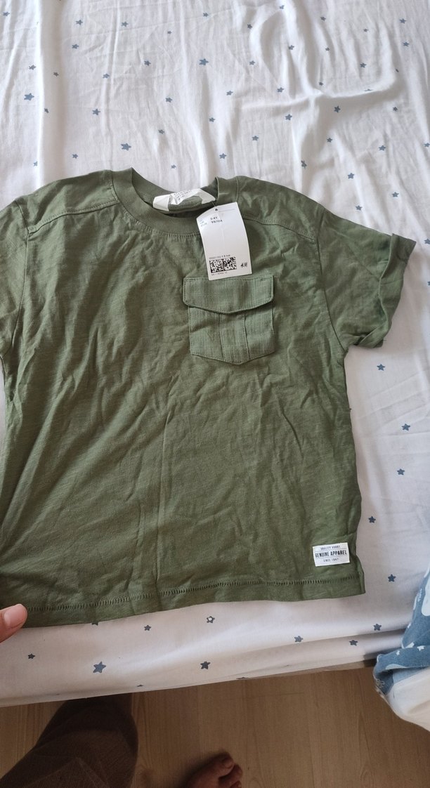 Erkek çocuk için kısa kollu, yuvarlak yaka ve bol kesim keten tişört. Küçük göğüs cebine ve hafif baskıya sahip, rahat sokak stili için uygundur.