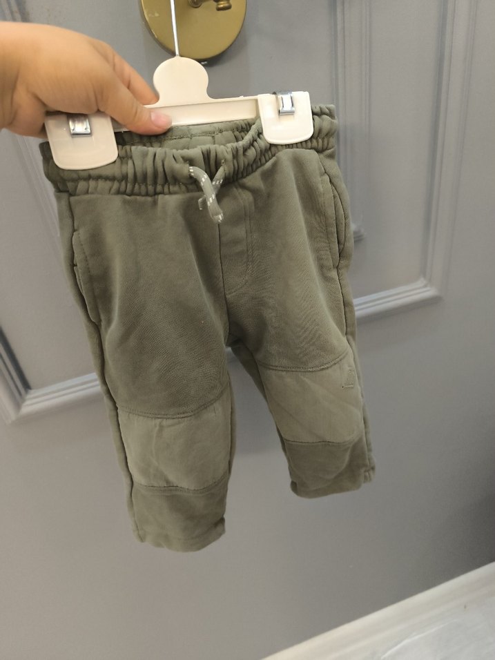 Haki renkte, süet kumaştan yapılmış, kemerli ve bol kesim erkek çocuk pantolonu. Desensiz ve rahat sokak stili için uygun.