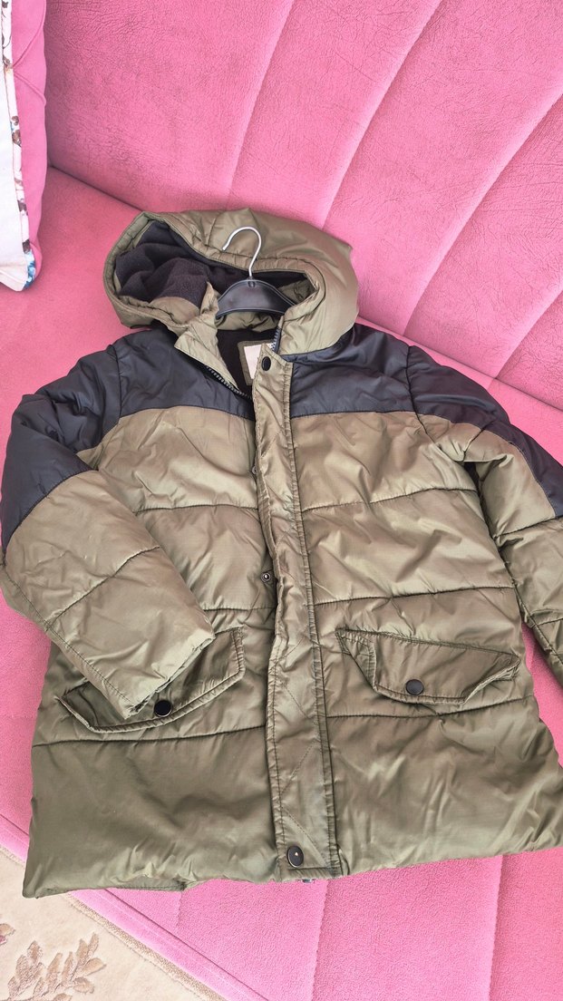 Erkek Çocuk haki yeşik Kapüşonlu Mont