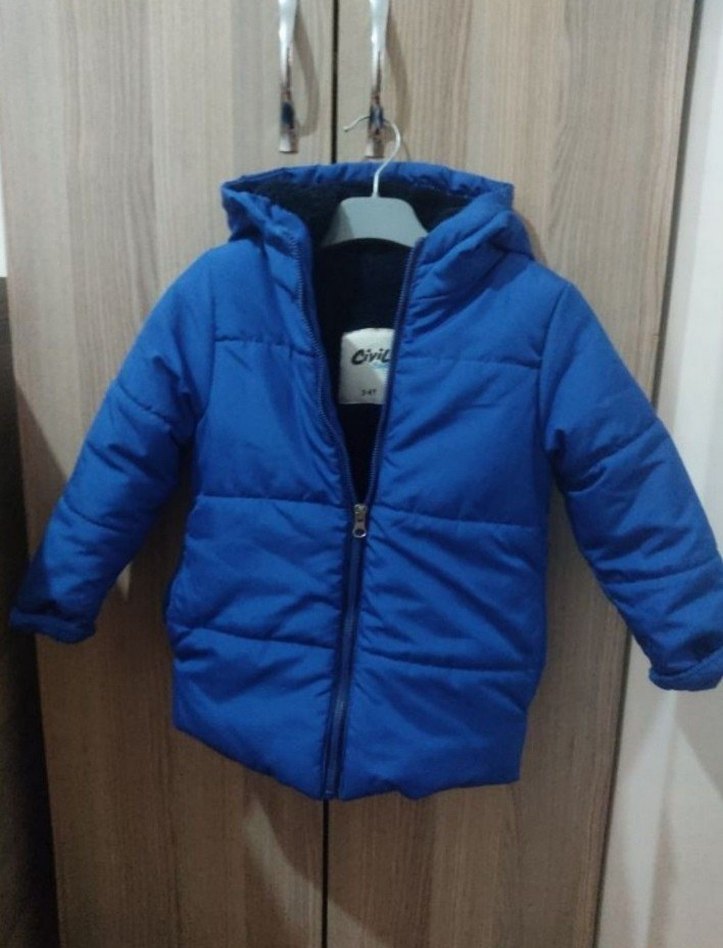 Erkek Çocuk içi polar Mavi Kapüşonlu Fermuarlı Mont