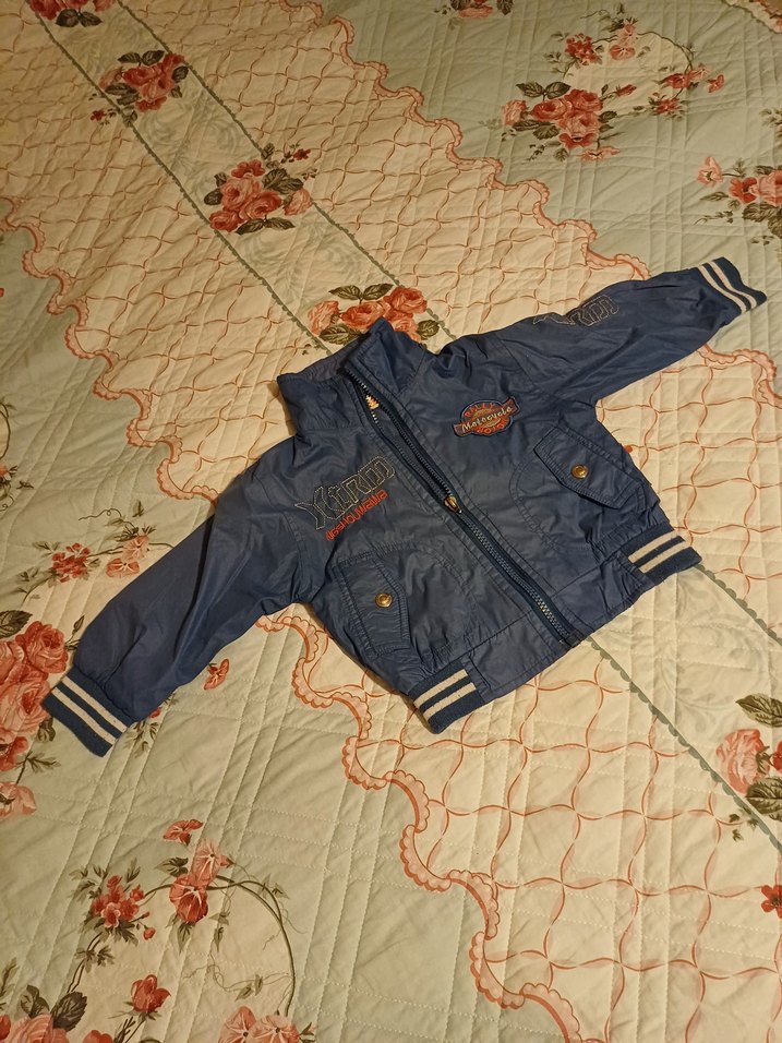 fermuarlı koyu mavi mont nakış detayları ve çizgili ribana manşetlerle trend bir görünüm sunar. fermuarı üç kısmı kopuktur başka bir sorunu yoktur