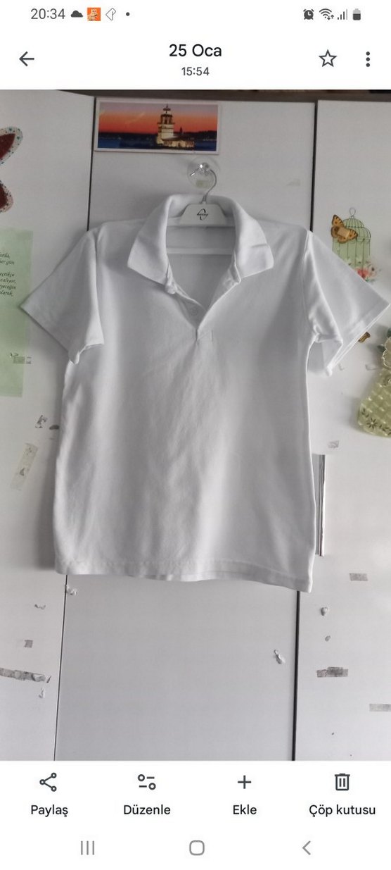 Beyaz renkli, kısa kollu ve yakalı pamuklu erkek çocuk polo tişörtü. Rahat ve bol kesimiyle sokak stiline uygun sade tasarım sunar. okul lacostu 15 yaş için uygun iki koltuk arası 52 cm boy 62 cm