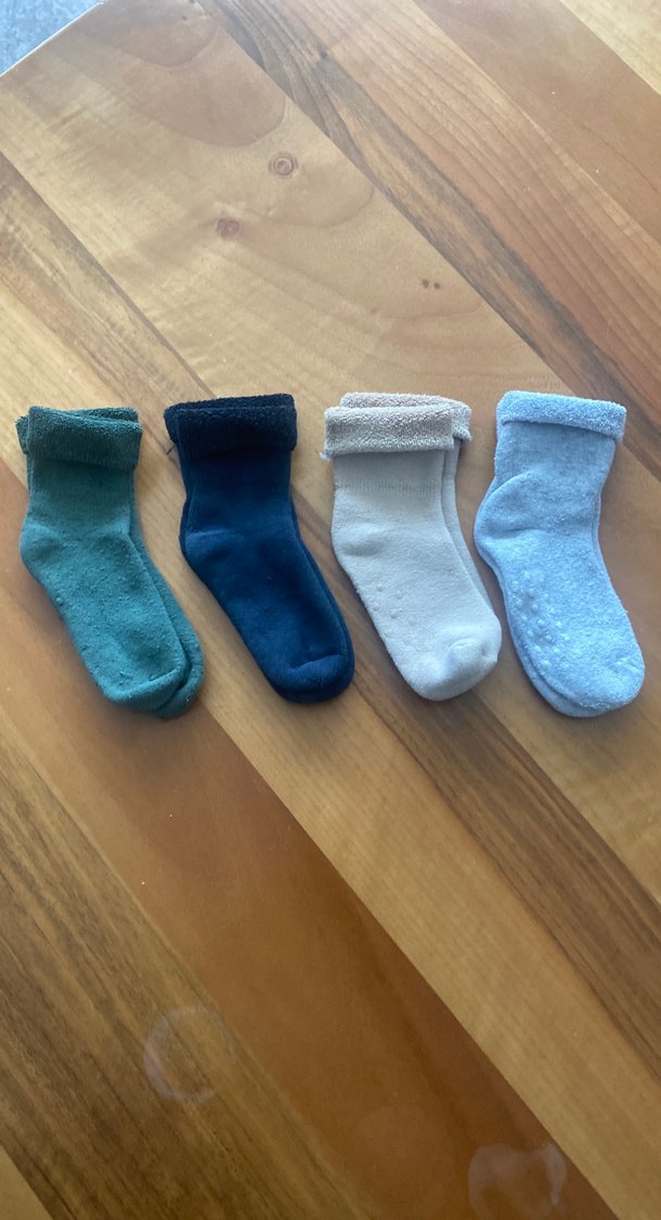 Erkek çocuklar için mavi, gri ve yeşil tonlarında düz renkli, katlanabilir manşetli yumuşak çorap seti.