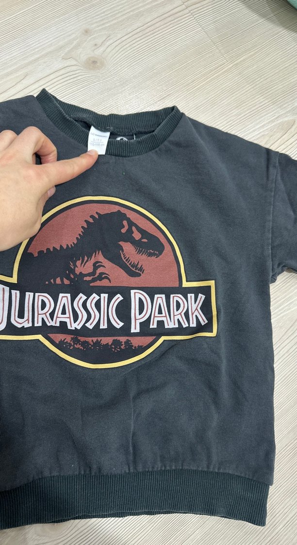Koyu gri renkli, gevşek kesim ve kısa kollu erkek çocuk sweatshirtü. Önünde Jurassic Park baskısı vardır. Yumuşak ve sıcak kumaştan üretilmiştir.