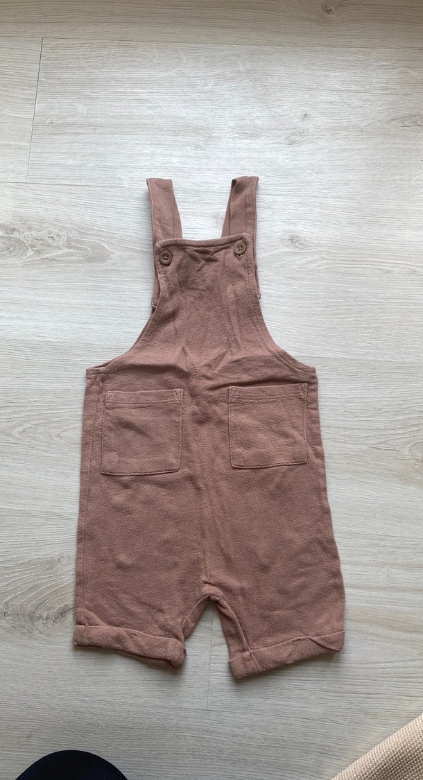 kahverengi, askılı ve cepli erkek çocuk tulumu. Rahat kesim