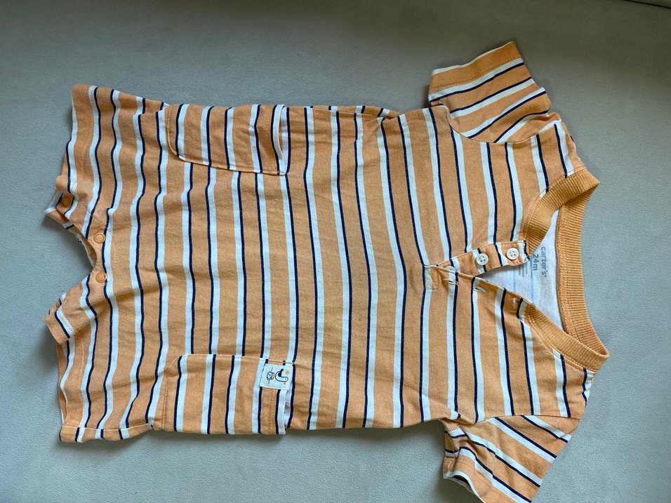 Erkek Çocuk Kahverengi Çizgili Kısa Kollu tulum